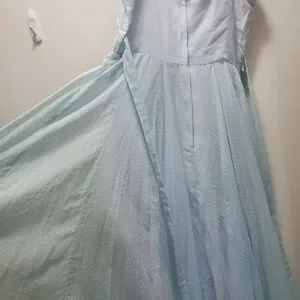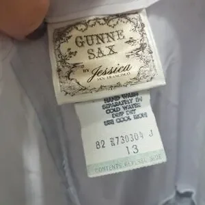 Charming Gunne Sax dress in light blue. Features delicate lace accents. Ideal for special events.
