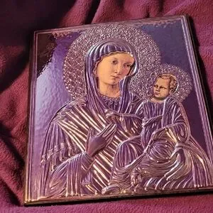 Elegant silver wall art featuring a religious motif. Perfect for adding a touch of spirituality to your home decor.