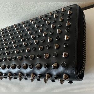 Christian Louboutin black Calf Leather rare studs and spikes in gun metal comes with COA. EUC