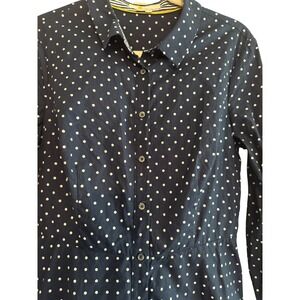 Boden Polka Dot Shirt Dress Long Sleeve Career Casual Navy Blue US 8R