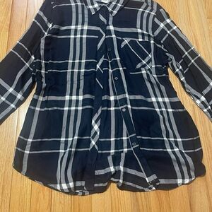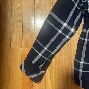 In great condition, dark navy and white button down shirt