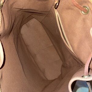 Used, there is water stains and scratches on the leather. There is light scratches on hardware. Canvas is great, no rips.