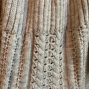 Embrace the cozy elegance of the Sundance Crew Neck Sweater, featuring a luxurious chunky cable knit pattern. This sweater is designed with a classic round neckline and three-quarter length bell sleeves, offering a relaxed and comfortable fit. The intricate knit patterns add texture and dimension, making it a perfect addition to your fall or winter wardrobe.