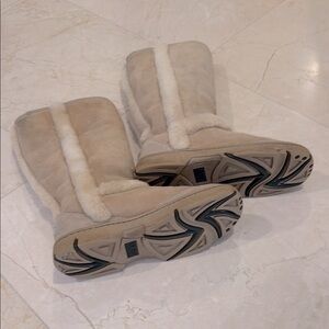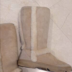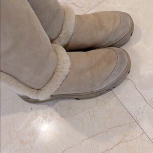 Stay warm and stylish with these cozy UGG tan boots, featuring a plush shearling lining. Perfect for chilly days.
