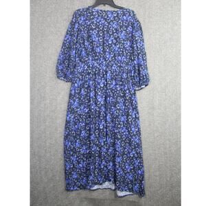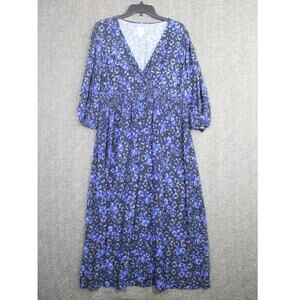 Gap Maternity Puff Sleeve Smocked Midi Dress size Large Blue