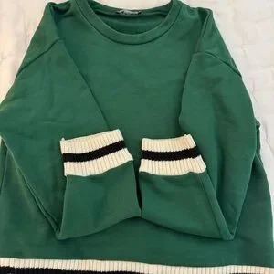 Zara Green Sweater and Pants Set with Striped Accents