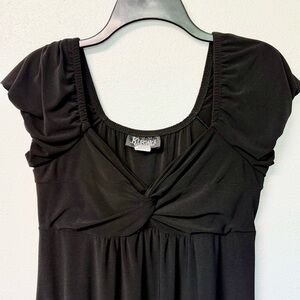 Elegant Kupcake dress in classic black. Features ruched sleeves and a flattering neckline. I am 5’4, 130lbs, 36B for reference.