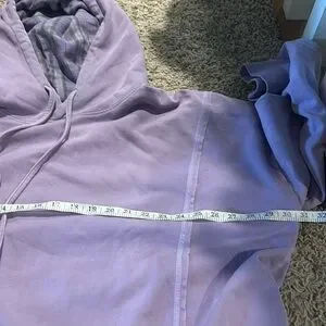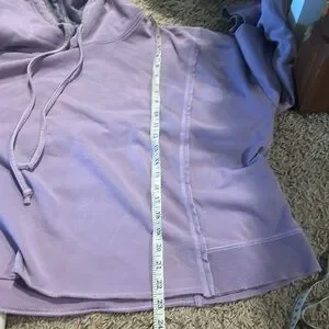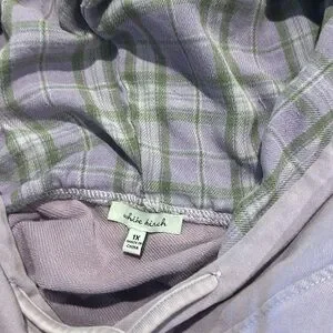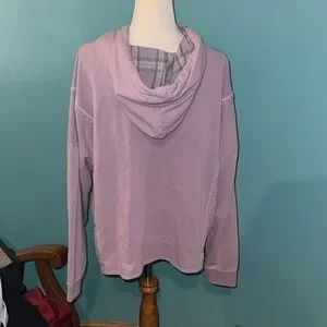 Lavender hoodie, the inside of the hood has a pretty purple plaid. I think I wore it once. Pet friendly home, may or may not have a few pet hairs, free of charge 😊
