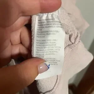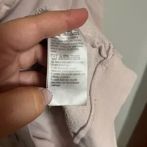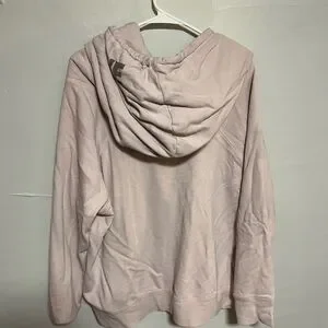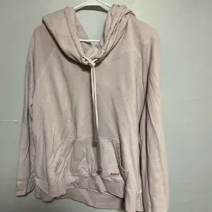 Light pink hoodie with soft texture. Includes drawstring hood. Cowl Neck for oversized look