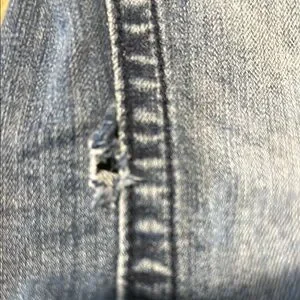 Inner left lower thigh has a 1/2” open area beside the inner seam.