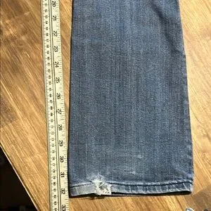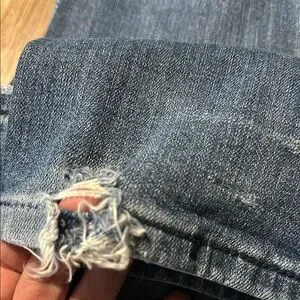 Fraying on back of the bottom hem with an open area on right back bottom hem. Please see pictures.
