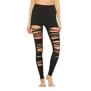 ALO Yoga Black Slashed Up High Waisted Black Athletic & Casual Leggings