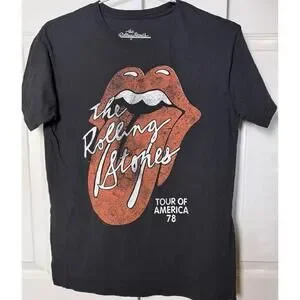 This The Rolling Stones Tour of America 1978 T-shirt in black is a must-have for any rock music fan. Made of 100% cotton with a regular fit, this short sleeve shirt features a graphic tee design that captures the essence of the iconic band. Easy to care for with machine washable garment care, this unisex t-shirt is perfect for all seasons and can be worn in the summer, fall, or spring. Show off your love for classic rock with this timeless piece of merchandise from the Rolling Stones.