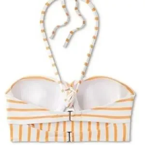 Stylish halter bikini top with orange and white stripes. Perfect for beach days. Shade and Shore bikini top with under wire. Has double hook closure in the back for larger bust women. Beautiful orange and white color with a keyhole design on the front. New condition. Smoke free home.