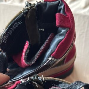 Experience the perfect blend of style and durability with Rouge Helium's Combat & Moto Boots (Powerful-06S). These boots feature a striking red and tan color-blocking design, crafted from premium materials for a fashionable look. The high-top design and sturdy construction make them ideal for both casual outings and adventurous endeavors. New, Not Worn.