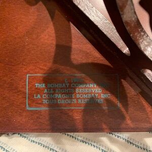 Stylish wall shelf with ornate design. Perfect for showcasing decor items. Adds elegance to any space. Vintage Mahogany Wood Wall Bracket Shelf, Bombay Company Scroll Work Hanging Shelf. Great vintage condition, some surface wear.