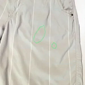 !!Left, front thigh - there are some very light discoloration - please review photo with this area highlighted in green.