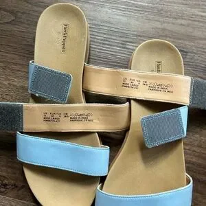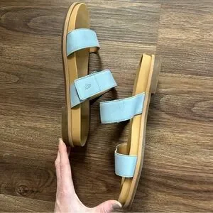 coastal grandma, boho, strap slides, cute slides, powder blue, Hush Puppies, comfort shoes, wide fit, adjustable straps, slide sandals, casual sandals, women's sandals, size 11 wide, light blue, summer shoes, spring fashion, everyday wear, walking sandals, open toe, flat sandals, pastel blue, comfortable footwear, fairy grunge, indie sleeze, cabincore, preppy, quiet luxury, resortwear, vacation, poolside, cruise shoes