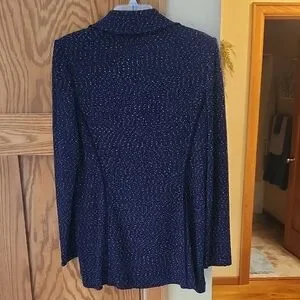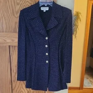 if you are interested, I have matching solid color aubergine knit St John pants size 8. Terrific condition. Also have matching shoes size 8 1/2, suede pumps.