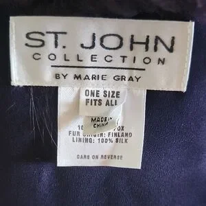 Elevate your style with the Women's Aubergine Fur Collar Jacket. This elegant coat features a luxurious fox fur collar and a sophisticated aubergine color, perfect for any occasion. St. John Knits. Four gold tone St John buttons on the front.