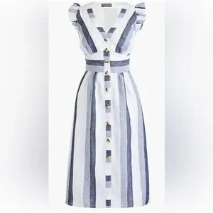 In a lightweight linen fabric, and with feminine ruffle cap sleeves it's a natural at picnics, BBQs and farmers' markets, but would fit in just as easily on beach vacations. Plus, we gave it pockets, making it the ultimate wear-everywhere staple*. ( * Copied from J.Crew’s description) Dress has side seam pockets and is fully lined. Extra button still intact. NWOT see pics for condition and dimensions.
