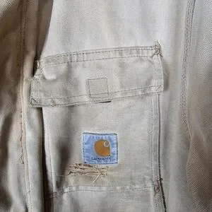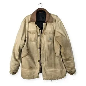 Vintage Carhartt Thrashed Worn In Faded Arctic Duck Canvas Chore Coat