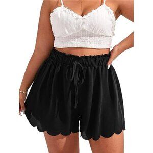 MakeMeChic Women's Plus Size Elastic Waist Scallop Trim Flowy Wide Leg Shorts