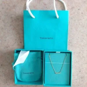 Tiffany & Co Fleur De Lis Keybar Pendant Necklace 18k Yellow Gold 16 inches