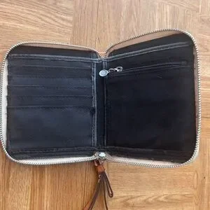 Stylish Coach wallet in black and brown. Ideal for keeping essentials organized.