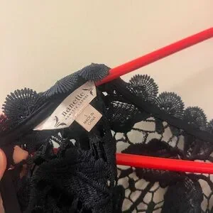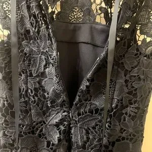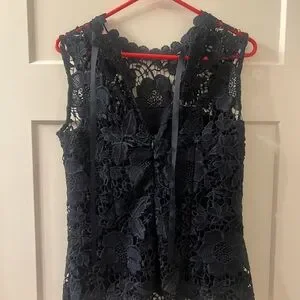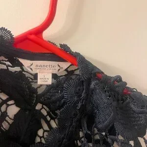 This elegant black sleeveless blouse by Nanette Lepore features a classic design with intricate lace detailing.