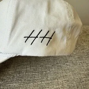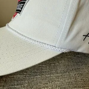 Stylish white baseball cap featuring a bold logo design. Perfect for casual outings and adding a sporty touch to your look.