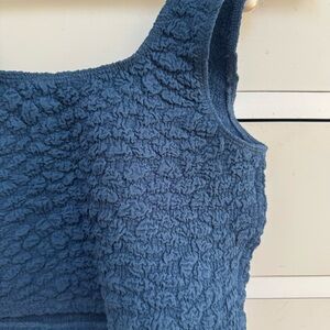 ANTHROPOLOGIE The Hannah Navy Blue Bubble Textured Women's Crop Tank NWOT sz S