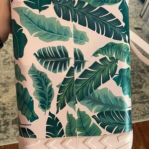 The BOGG BAG Green and Pink Tropical Tote is a vibrant and spacious accessory, perfect for adding a splash of color to your outings. Crafted with a bold green leaf pattern and complemented by pink accents, this tote is both stylish and functional. Its structured design ensures durability, making it an ideal choice for beach trips or casual day-to-day use.