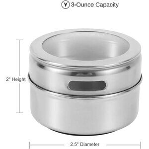 12 Magnetic Spice Jars Silver Steel w/ Sift Pour Lids + 120 Labels Organizer