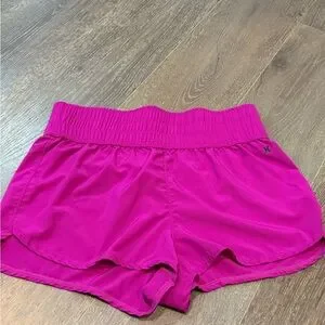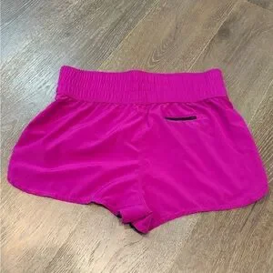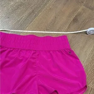 Bright fuchsia shorts with elastic waistband. Ideal for workouts or casual wear. Lightweight and comfortable.