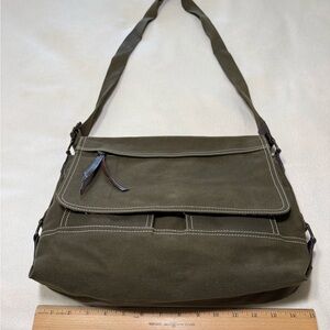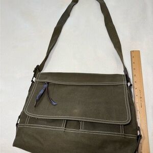 Orvis Olive Green Canvas Cross Body Messenger Bag with Brown Leather Accents