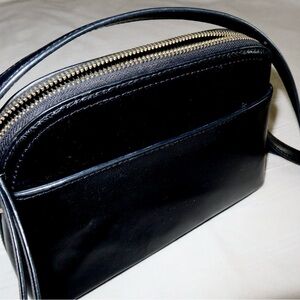 This Kate Spade crossbody bag in classic black exudes elegance with its smooth finish and polished design. Perfect for any occasion, it combines style and practicality effortlessly. The gold-toned hardware adds a touch of modern contrast to its timeless appeal. *Near perfect condition.