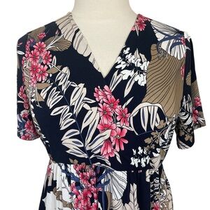 Step out in style with this chic floral maxi dress. Featuring a stunning navy and pink design, it's perfect for any occasion.