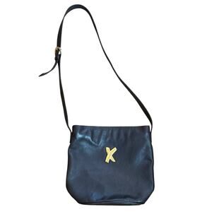 Paloma Picasso Dark Brown Leather Crossbody Purse Gold Logo Made in Italy
