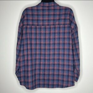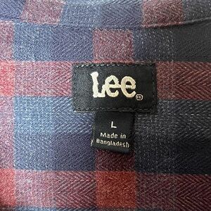 Lee Womens Button Down Shirt Size Large Blue Red Plaid Oversized Casual