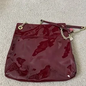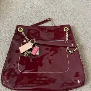 Stylish and versatile, this glossy burgundy tote bag is perfect for any occasion. Its sleek design and rich color make it a standout accessory.