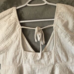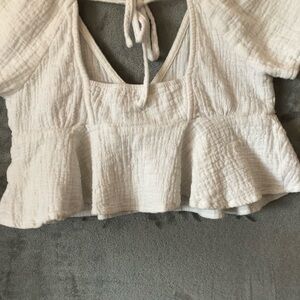 Mi ami White Crop Peplum Blouse Size L V-Neck Summer Beach Boho Festival