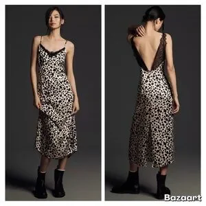 NWT By Anthropologie V-Neck Open-Back Slip Midi Dress Sz S