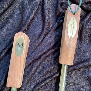 Elegant wooden shoe trees with a sturdy metal handle. Perfect for maintaining shoe shape.