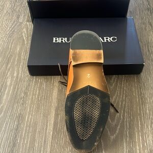 Size 2 boys. Elegant brown leather derbys by Bruno Magli. Classic design with brogue detailing. Ideal for formal events. Comes with the shoe box.