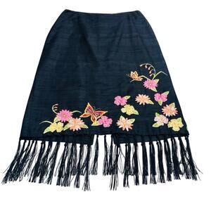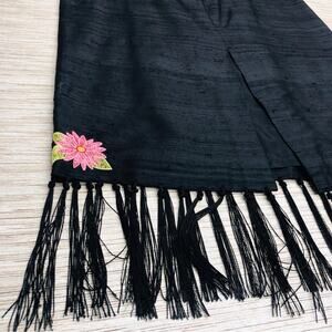 Vintage Maggy L Black Silk Embroidered Fringe Skirt Y2K Romantic Fairygoth