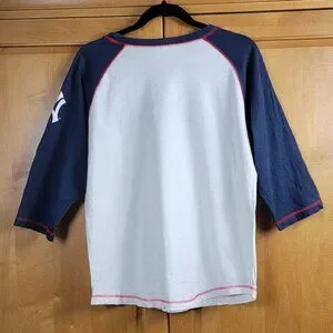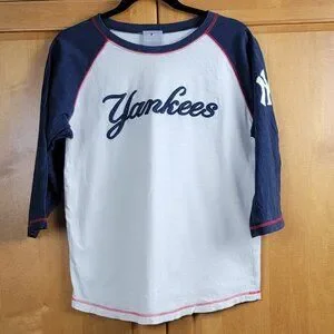 MLB Genuine Merchandise New York Yankees White Navy 3/4 Sleeve Baseball Style Te
