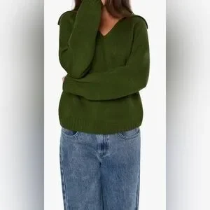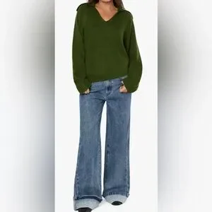 Brand new with tags, hunter green v neck oversized sweater, can fit up to a Medium, Final Sale!!
