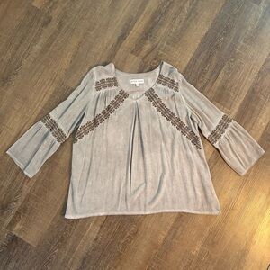 Knox Rose Boho Women's Taupe Embroidered Blouse - Size Medium