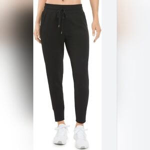 Experience ultimate comfort with Danskin's black jogger sweatpants, featuring a sleek tapered leg design and elastic cuffs for a modern fit. Crafted from a soft cotton-blend material, these sweatpants are perfect for both casual outings and athletic activities. Enjoy a relaxed fit through the thighs, ensuring ease of movement and style.